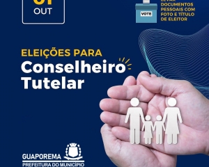 A eleição para escolha dos 5 membros do Conselho Tutelar será realizada no dia 01/10 das 8h às 17h.Cada eleitor poderá votar em 1 candidato. Ao final de todo o processo de escolha a Comissão Especial divulgará o nome dos cinco conselheiros tutelares titulares e os suplentes escolhidos em ordem decrescente de votação.